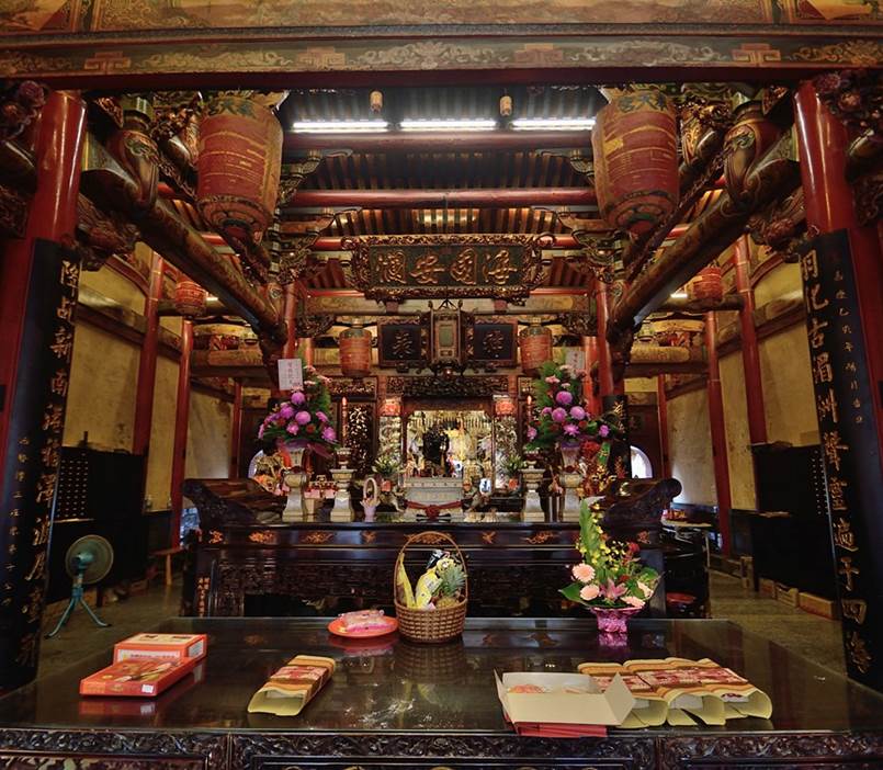 由正殿入內參拜媽祖時,藉由巧妙的燈具隱藏設計,並精算神龕內外燈光角度,使媽祖神龕成為廟內最醒目的焦點,並消除玻璃反光與臉上珠簾的陰影,讓信眾與媽祖沒有隔閡,自然呈現媽祖如母親般慈祥的面容,撫慰芸芸眾生的心靈。