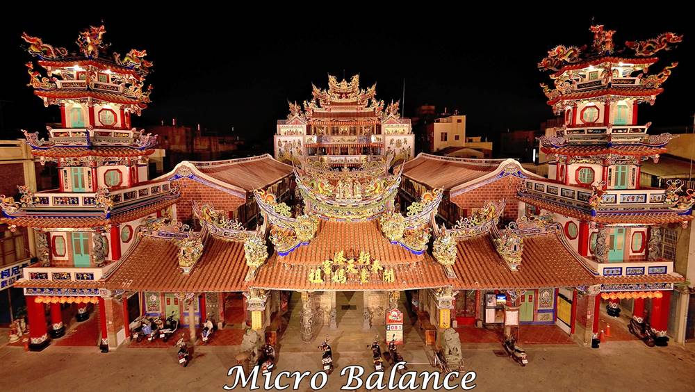 微槓桿的照明設計,使建築與環境呈現明亮的對比,每年大甲媽祖遶境,百萬信眾虔誠來到新港,從遠方便能看見廟宇壯觀的氣勢,由於燈光採外圍投射,廟宇屋頂沒有燈具破壞整體的美感,使目光聚焦於奉天宮中央最亮的金字招牌,再以頂上的交趾陶作為陪襯,充分展現層次分明的建築美學。