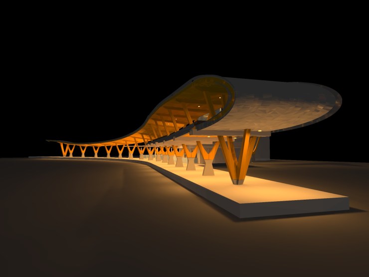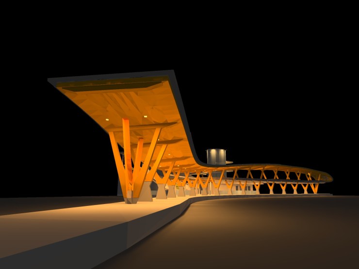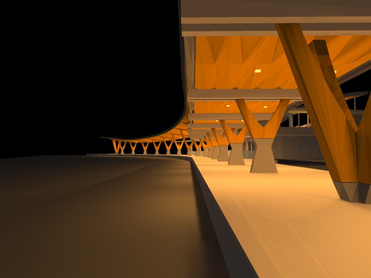 ※建築照明:車站建築採用大量弧形及稜角,為呈現最佳照明效果採用3D模型模擬各種照明方式,優化最佳燈具設置來呈現光影藝術效果。