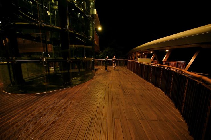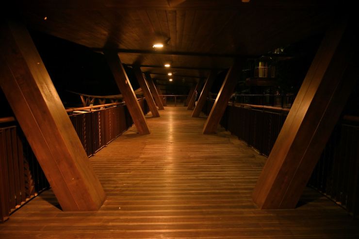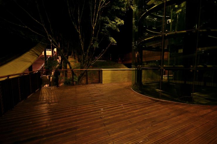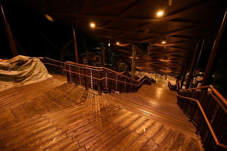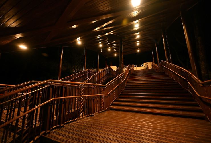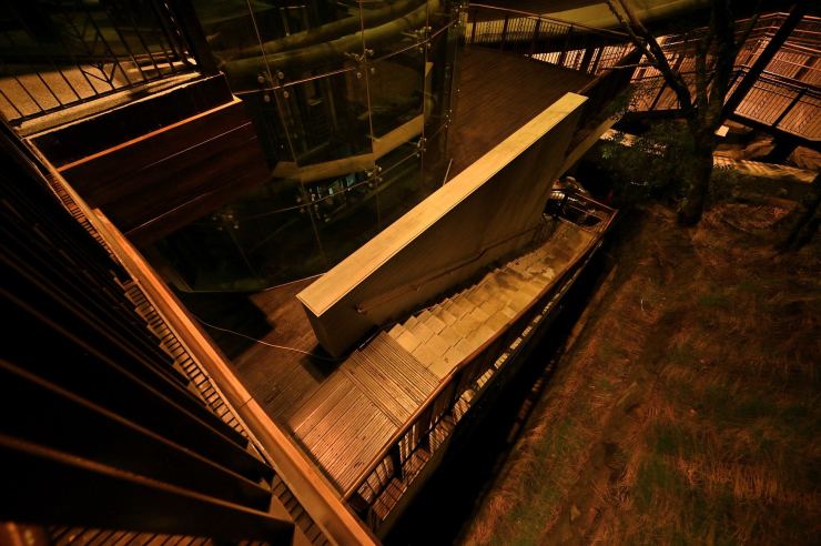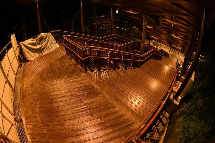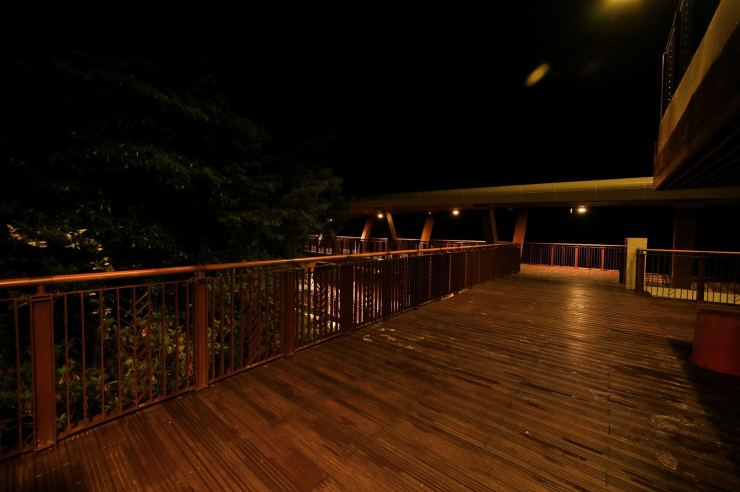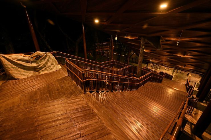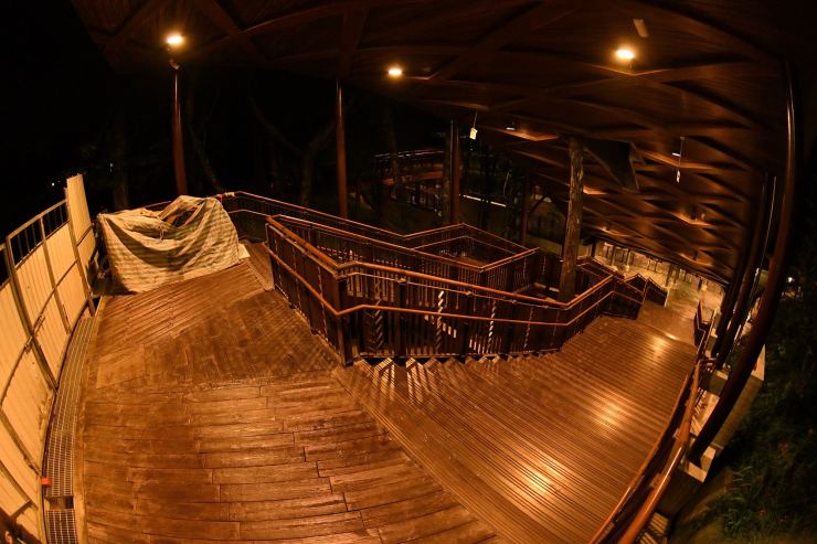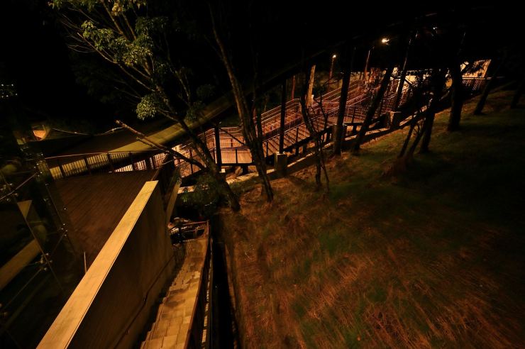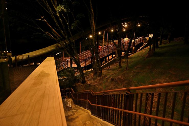 ※動線照明:以水平前拋兩側超廣角光學技術,使光線僅照亮月台、樓梯等動線區域,不外溢至周遭樹林,燈具水平投光輔以柔光濾鏡使視覺眩光降至GR10以下,創造明亮低眩光動線照明。