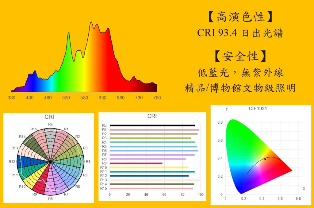 - 安全性:無紫外線,精品/博物館文物級照明